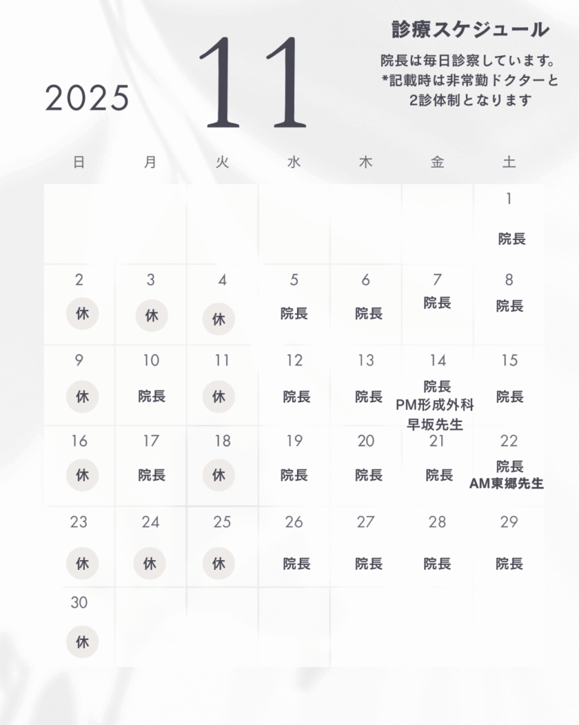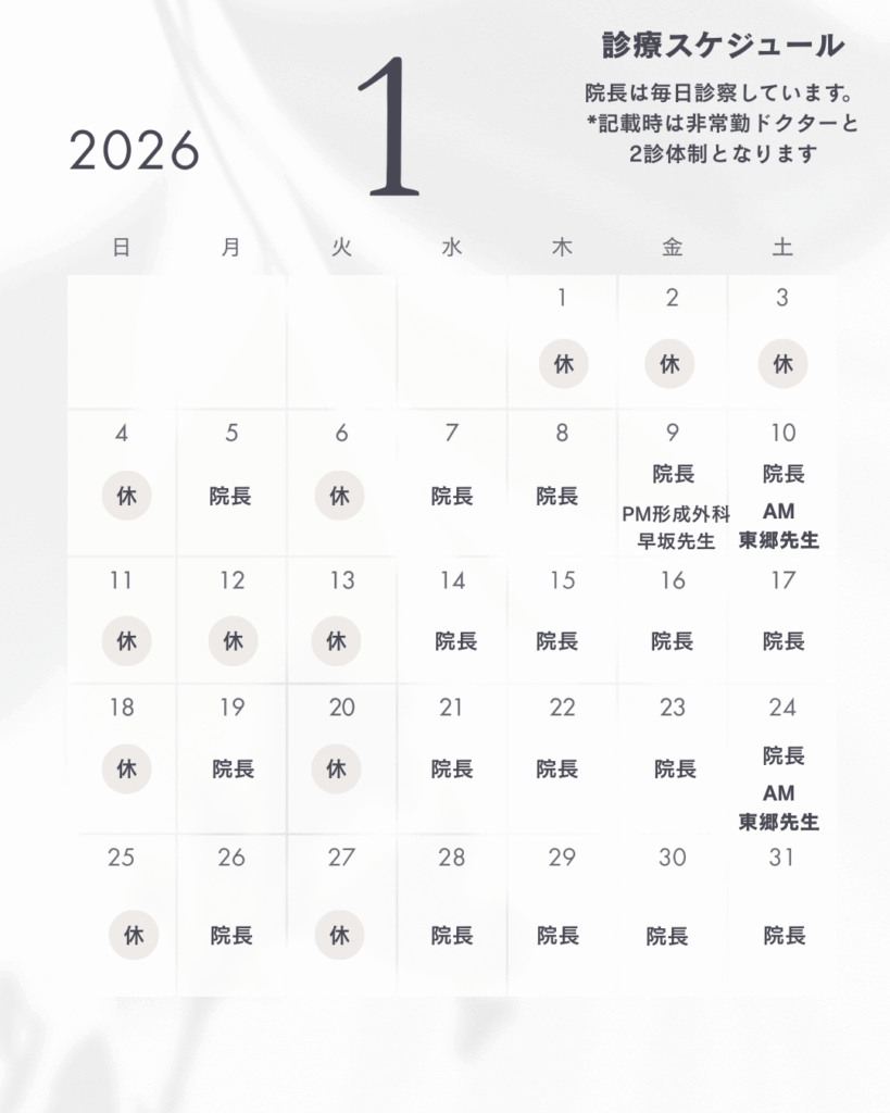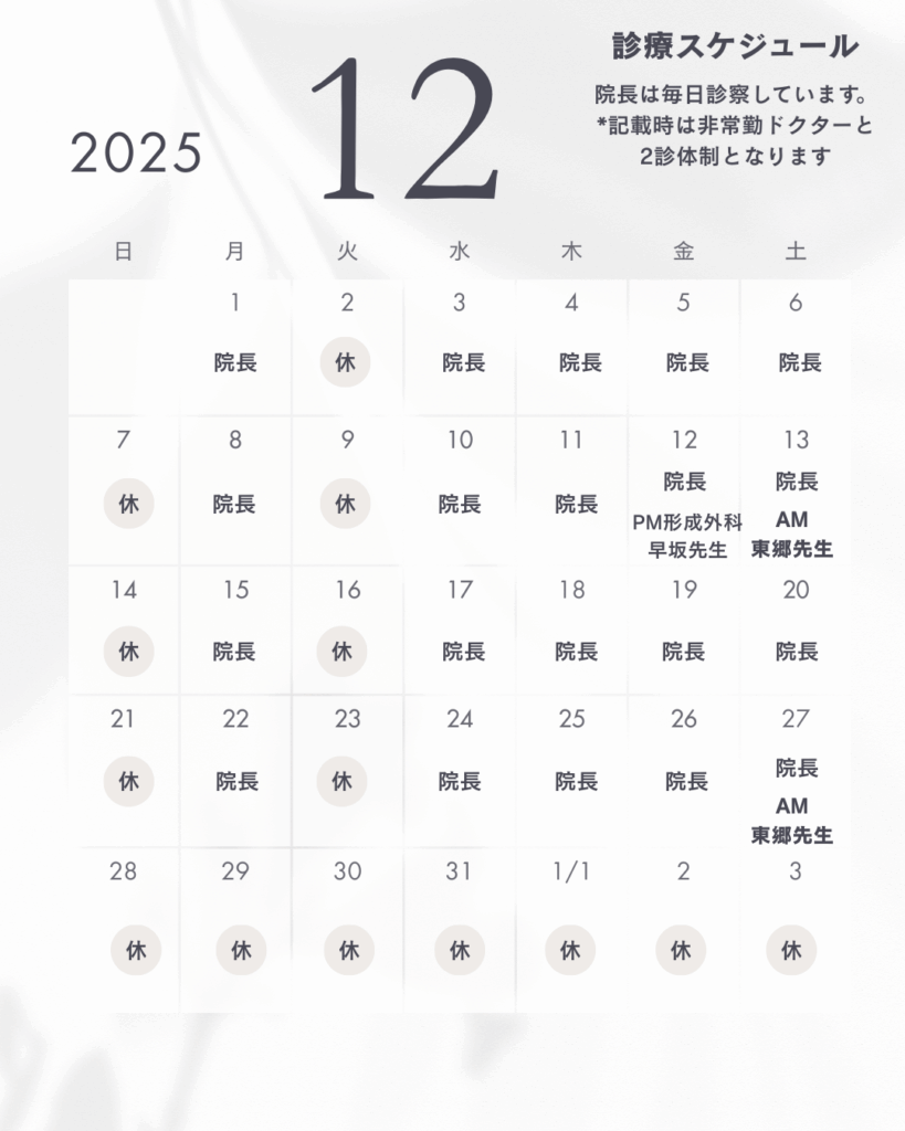 インフルエンザ予防接種診療スケジュール11月〜1月 2025.11.24 記事のタイトルとURLをコピーする デュピクセント、イブグリースの治療に関わる方へ前の記事 健康保険証で受診ができなくなります次の記事
