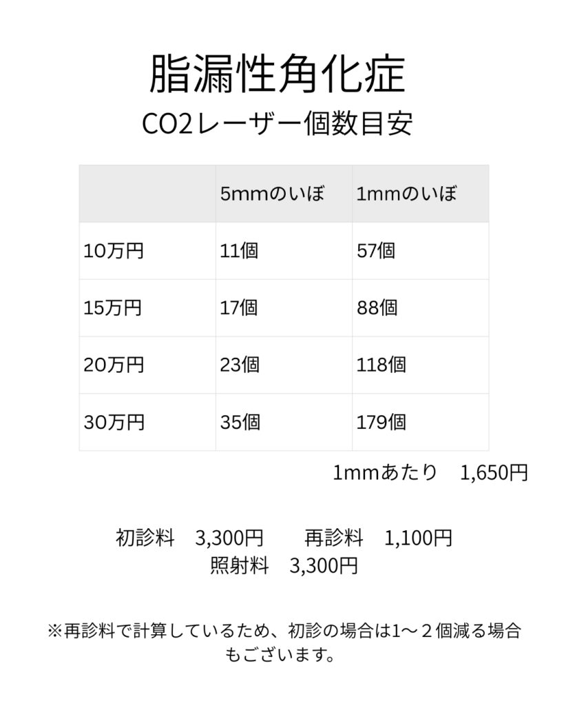 あさい病変(脂漏性角化症)は 1mmあたり1,650円(税込) です。